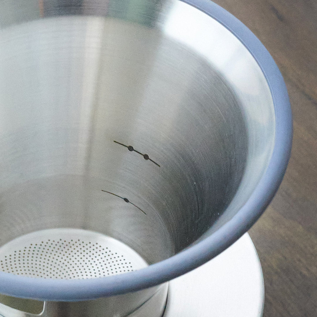 Our simple dot-based measuring system is clearly marked inside the brewer, making it easy to portion your grounds over any sized mug or vessel. Measure your grounds to the single dot for a single serving or measure to the second dot for two servings.